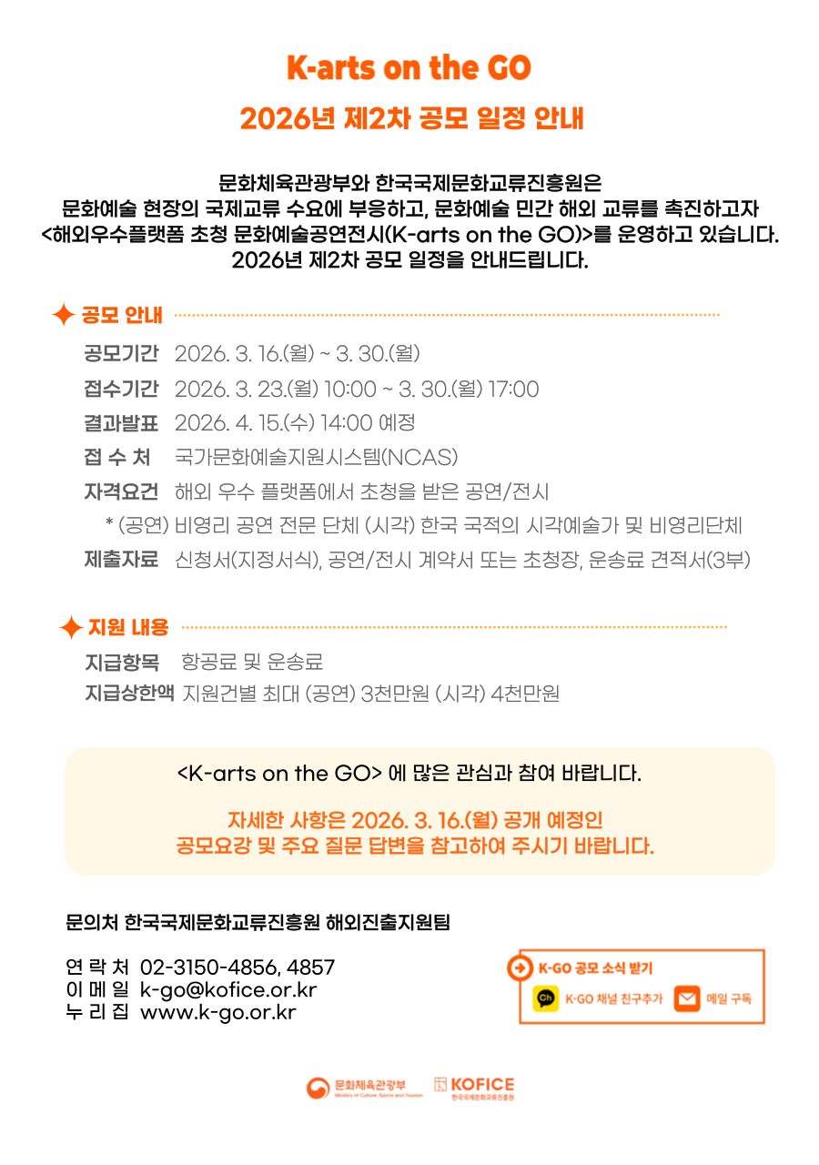 <K-arts on the GO> 2026년 제2차 공모 일정 안내